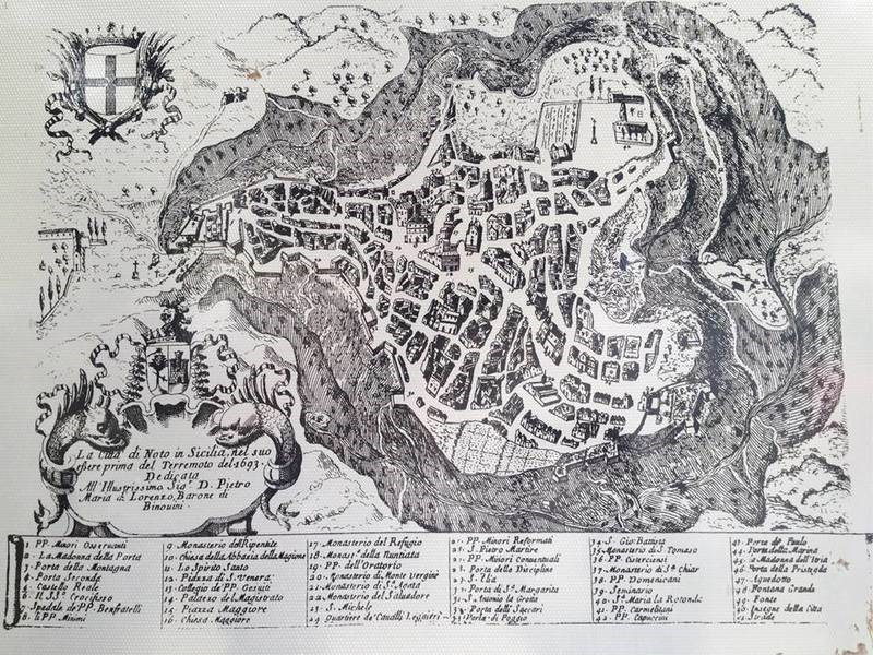 Antonio Maria Tedeschi, Panoramic View of Ancient Noto, 1777, held at the Municipal Library of Noto