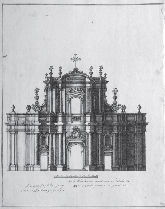 R. Gagliardi, Scenography G, Church of San Domenico in Noto (DARCH, former Di Blasi collection) in ROSARIO GAGLIARDI (ca. 1690–1762), exhibition catalog edited by Marco Rosario Nobile and Maria Mercedes Bares