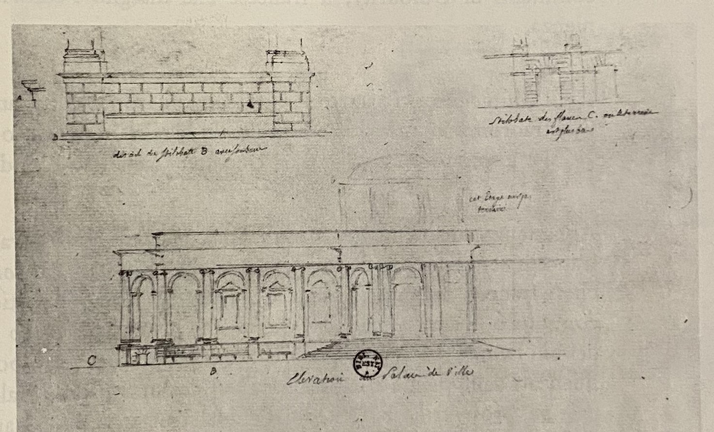 Sketch of Noto’s Municipio. Léon Dufourny, Notes rapportés d’un voyage en Sicilie fait par lui en 1789, in La genesi di Noto. Una città siciliana del Settecento, S. Tobriner, ed Dedalo, 1993